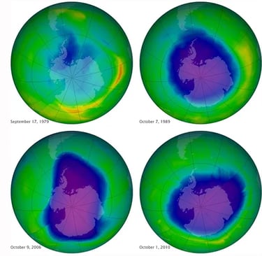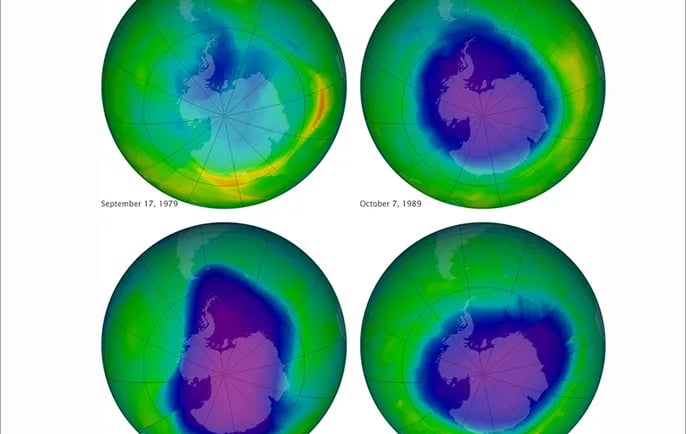 حين اكتُشف في ثمانينات القرن الماضي أن الأوزون يتناقص فوق القطب الجنوبي، أدرك العالم أنه في ورطةٍ لم يعرف مثلها من قبل. السبب كان واضحًا: الإنسان.